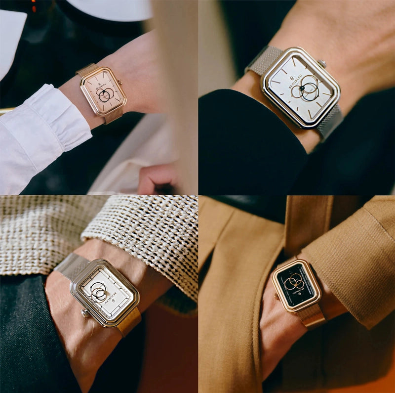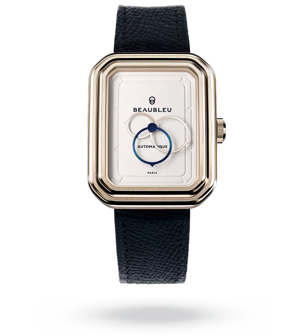 Première montre de forme de la Maison Beaubleu, Figura se distingue par sa sobriété architecturale et son penchant pour l’étonnement et la désinvolture.
