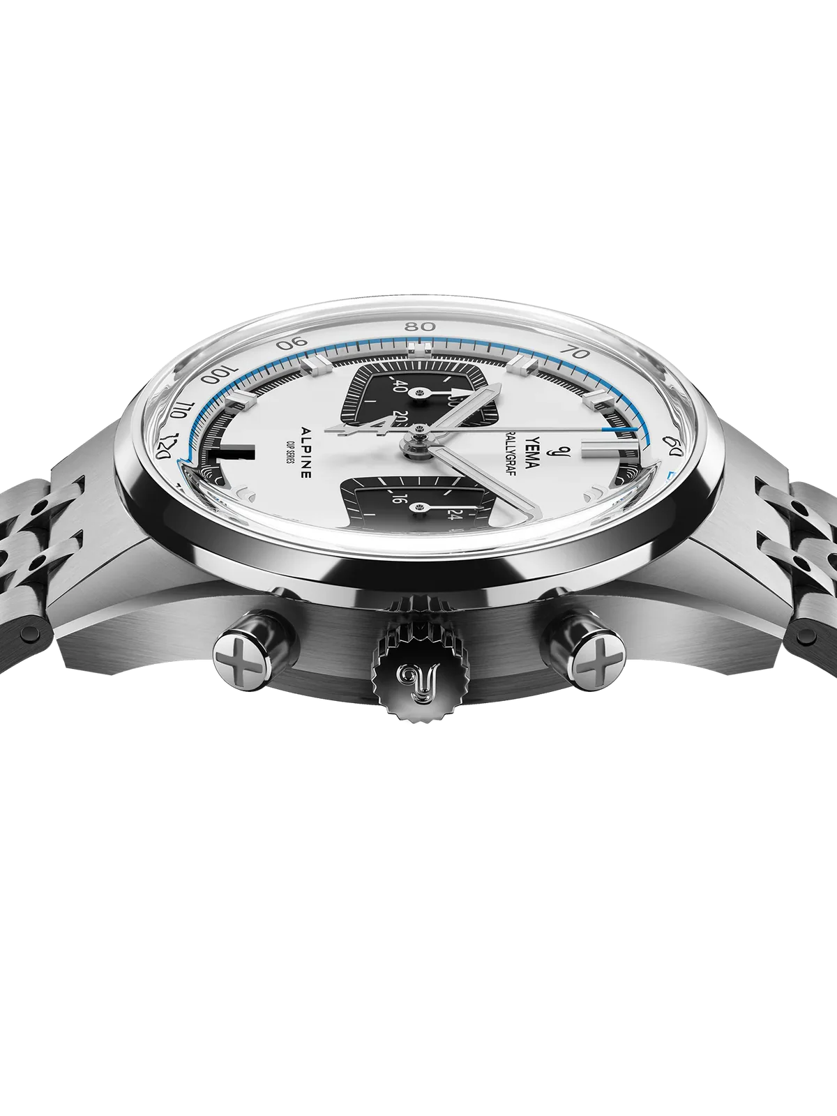 Le design immédiatement reconnaissable des sous-cadrans "Rallygraf" du chronographe s’inspire directement des tableaux de bord des voitures de course vintage, un clin d’œil apprécié des amateurs et collectionneurs.