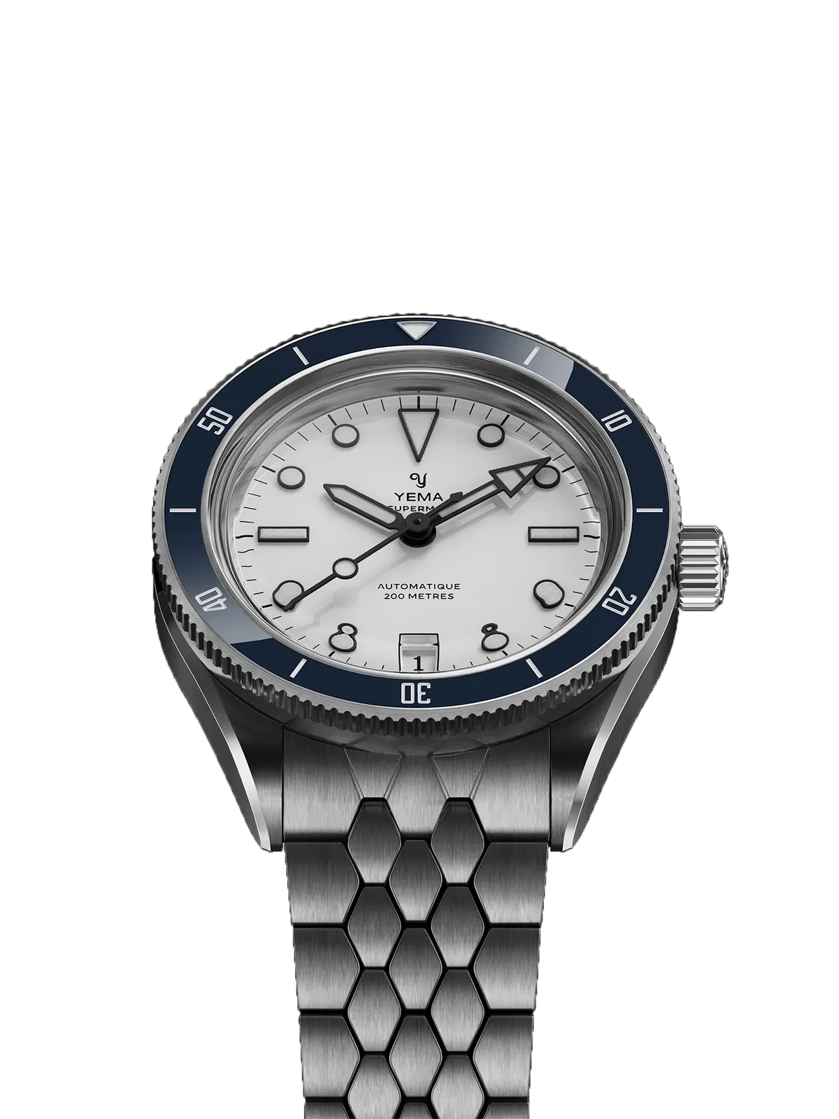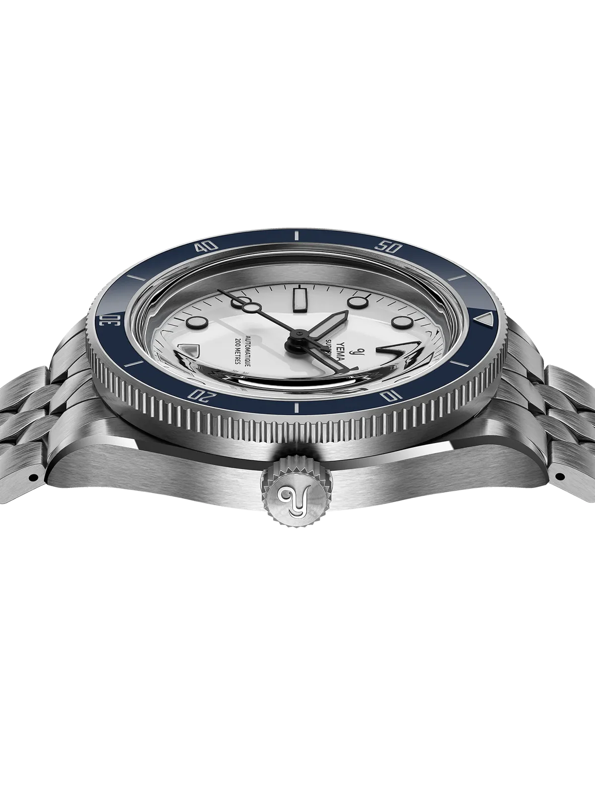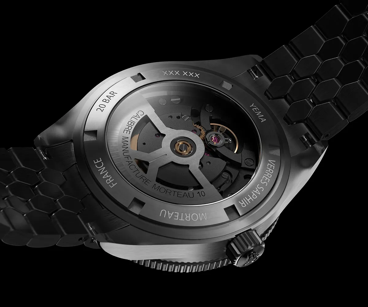 L'emblématique bracelet acier YEMA Scales des années 1960 s’est affiné de 0,40mm tout en s’affinant progressivement de 4mm à la boucle et s’adapte naturellement à la forme du poignet. Il arbore une finition entièrement brossée, offrant une continuité visuelle avec le boîtier brossé.